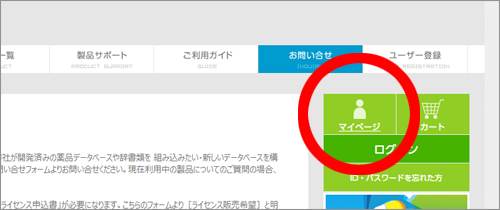 ダウンロード製品の購入手続きが完了したら「マイページ」にログインします